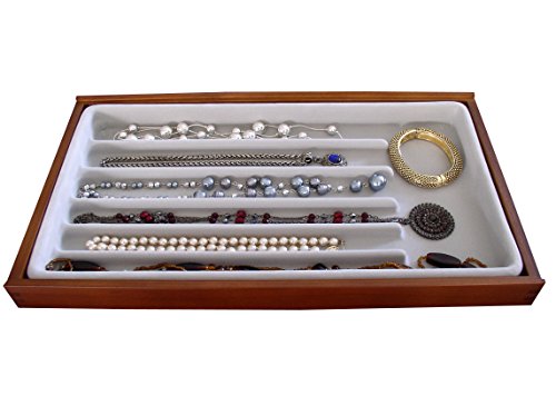 -. Feature : *NEW AND IMPROVED* Hand-crafted from hardwood with beautiful maple finish and clear lacquer coating that preserves the beauty for many years of use. / Customize using multiple organizers by Axis; stackable, sliding design. Different sizes and compartment boxes available and can all be used together in any configuration. The exclusive Slide 'em feature allows you to slide the trays to the left or right and see all of your jewelry at the same time. / Soft, velvet-like flocked interior tray prevents scratches and tarnishing which is important for jewelry and ring protection / Perfect storage solution for all types of jewelry such as bracelets, necklaces and more. / Measures 16-1/8 by 8-1/8 by 1-3/8 inches (LxWxH) 6 compartments to help prevent tangling. Compartments are 12" L X 1.5" W X 1" H with an open area of 2.5"L X 7.5" W X 1" H. A unique, USA Patented Design Other Axis stack-em compatible with this one are: #2701, #2702 and #2721