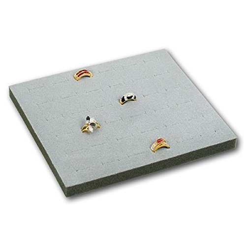 -. Feature : Gray velvet / Measures 7 3/4" wide x 6 3/4" long / Holds 36 rings / Fits all half size trays