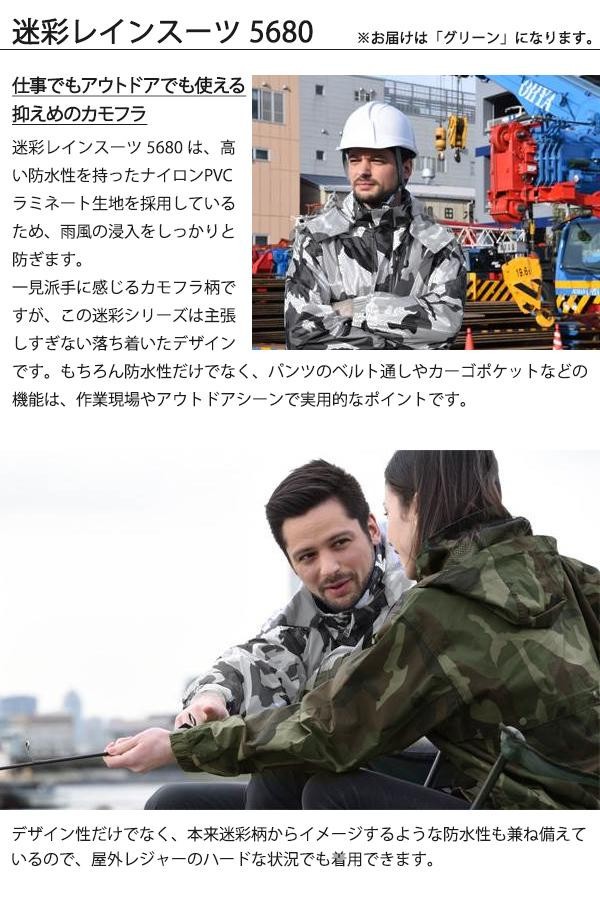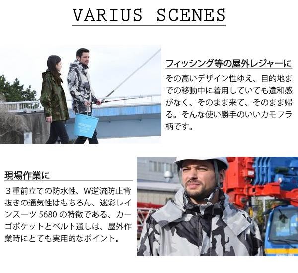 仕事でもアウトドアでも使える抑えめのカモフラ柄で、デザイン性と機能性を兼ね備えたレインウェアです。 |