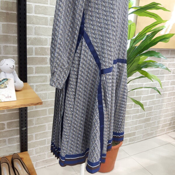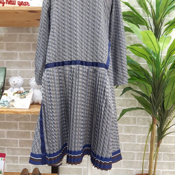 모던한스타일의 패턴플리츠 원피스입니다슬림한 바디 라인으로 연출 할수있는 A라인에 자연 스럽게 떨어지는 플리츠 주름이 체형커브는 물론 스타일쉬한 느낌의 원피스입니다