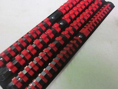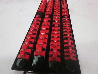 80pc RED CLIPS 17-1/2" LONG SOCKET TRAY HOLDER ORGANIZER 1/4" 3/8" 1/2" 4 RAIL