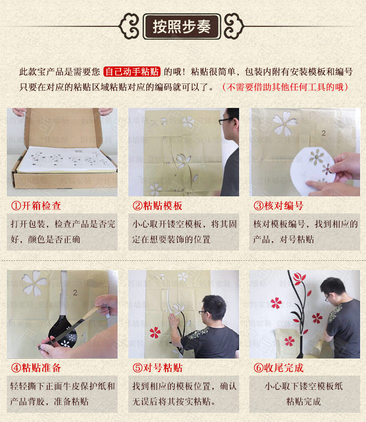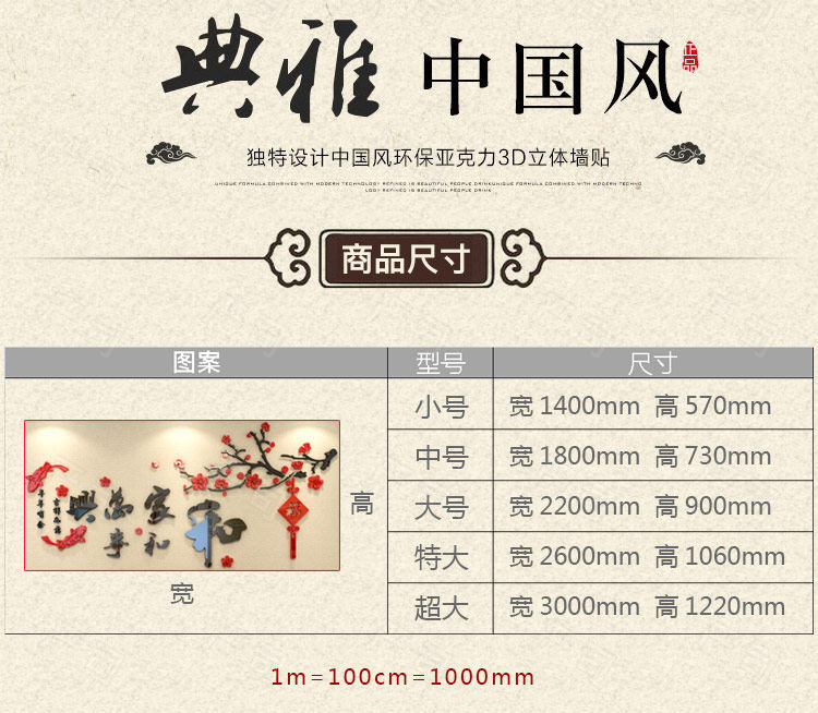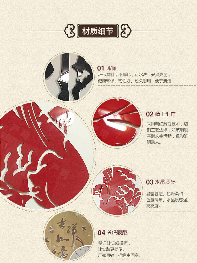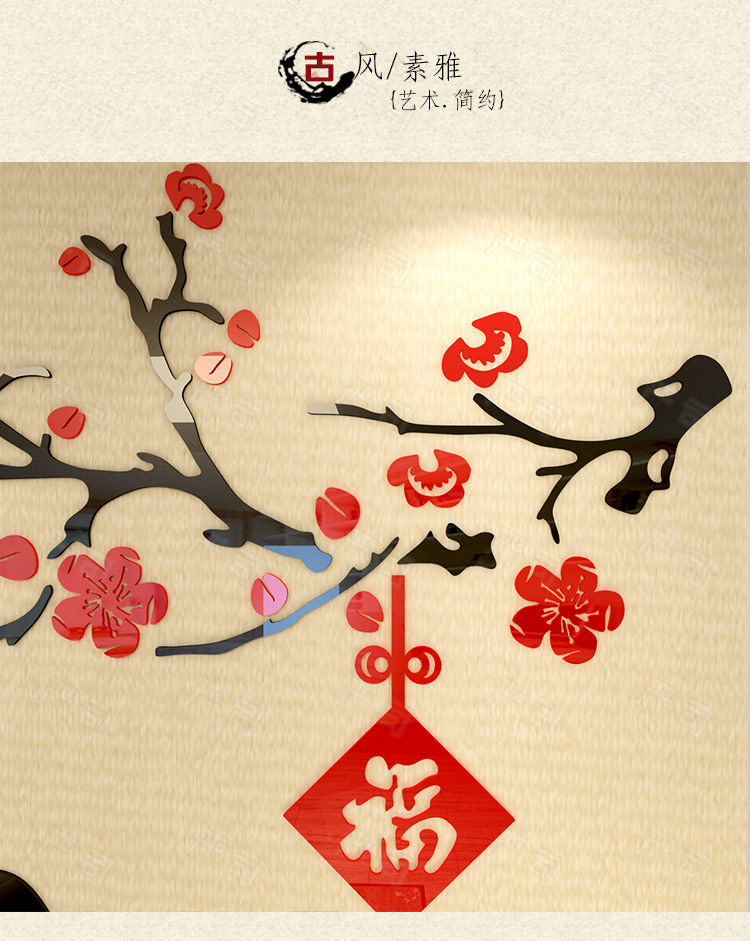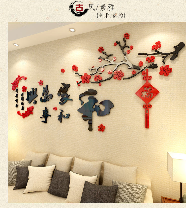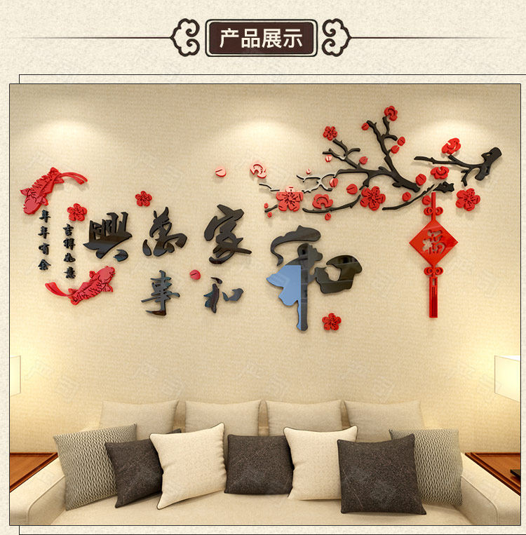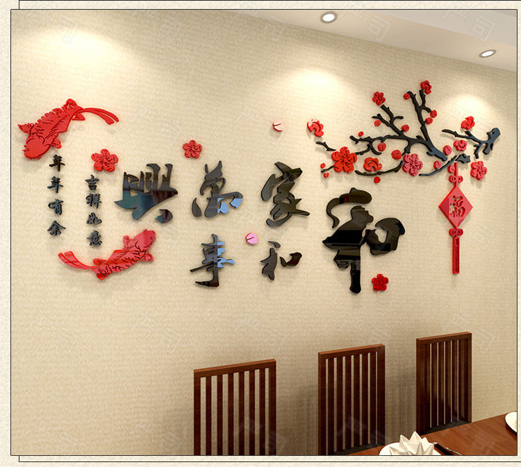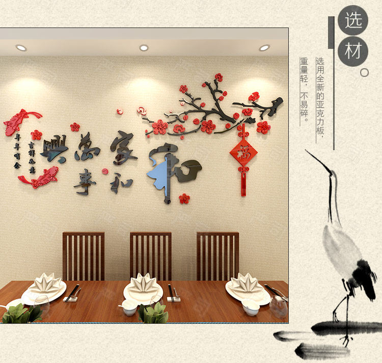 3d亚克力立体墙贴客厅电视沙发背景餐厅房间墙面装饰中式自粘贴纸
