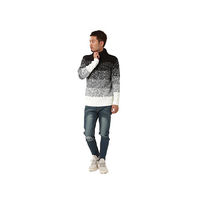 JIGGYS SHOP (더기즈숏푸) 니트 스웨터 맨즈 터틀넥 케이블 뜨기 바탕이 두꺼운 것 긴 소매 방한 보더 아메카지