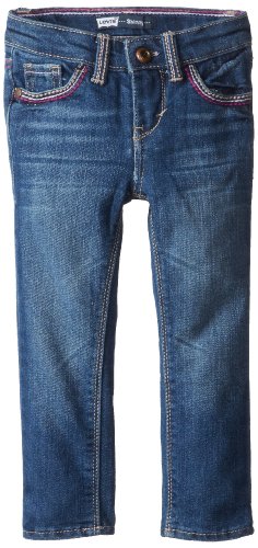 Levi's Thick Stitch Skinny Jean for Girls offers a comfortable and flattering fit thanks to its stretch material and adjustable elastic waistband. This skinny jean looks great too with thick stitching on the front and back flap pockets for a unique twist on the classic Levi's styling you love.Feature