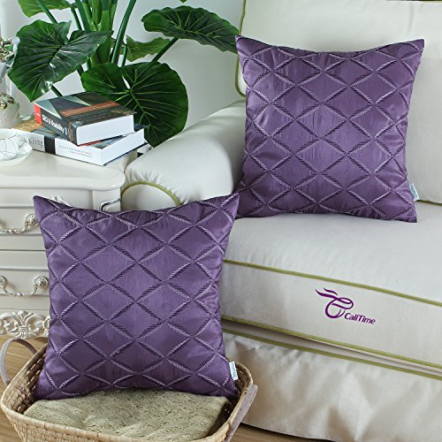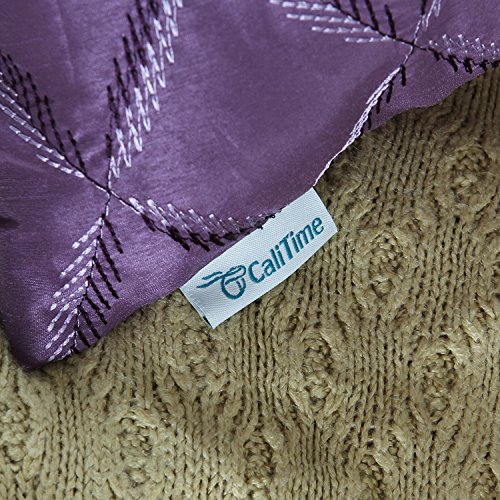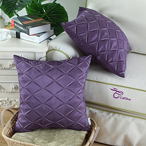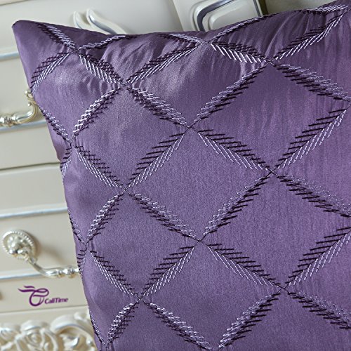 Pack of 2 CaliTime Pillow Shells Cushion Covers Faux Silk Diamonds Chain Geometric Embroidered 18 X 18 Inches Purple