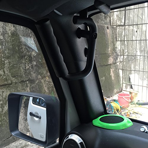 Matte Black Solid Steel Front Grab Handles GraBars For Jeep Wrangler JK JKU Sports Sahara Freedom Rubicon X & Unlimited X 2/4 door Roll Bar 2007-2016 (Grabars Style Two)