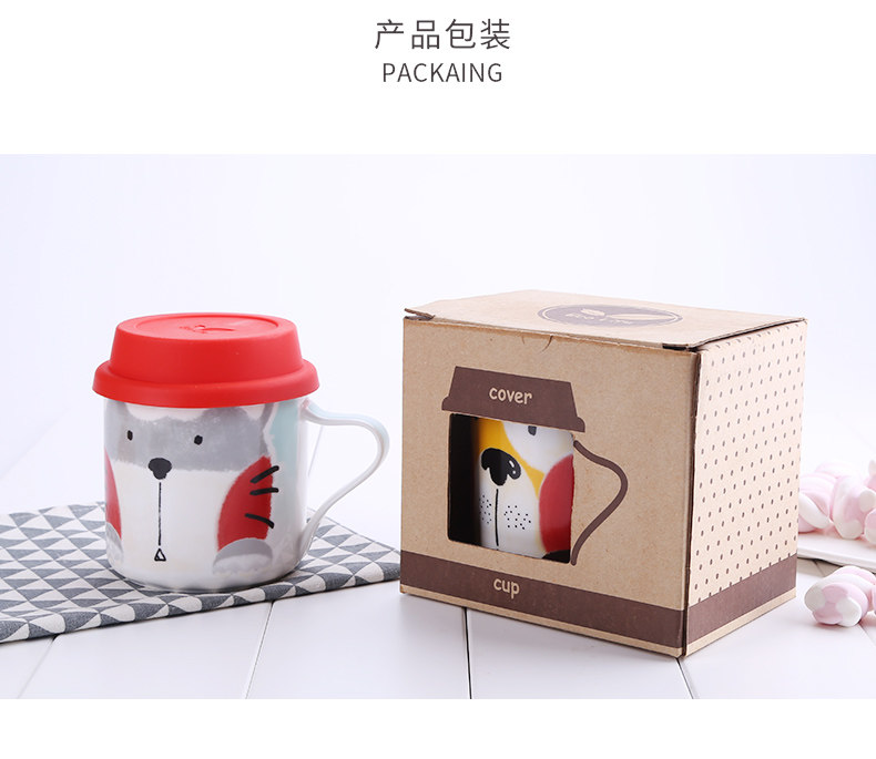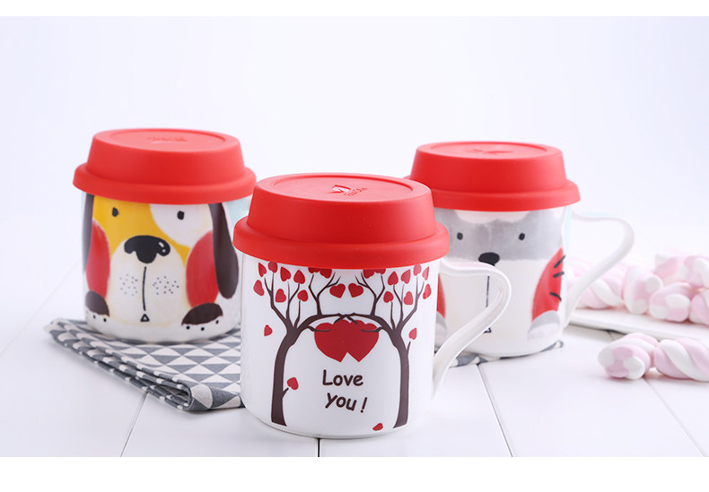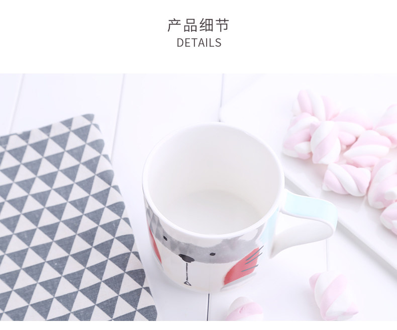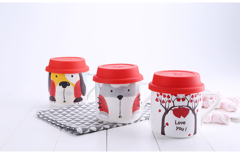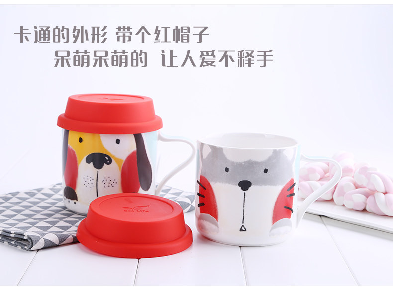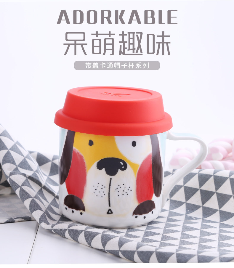 可爱女卡通儿童早餐杯创意陶瓷马克杯学生带盖咖啡办公室喝水杯子