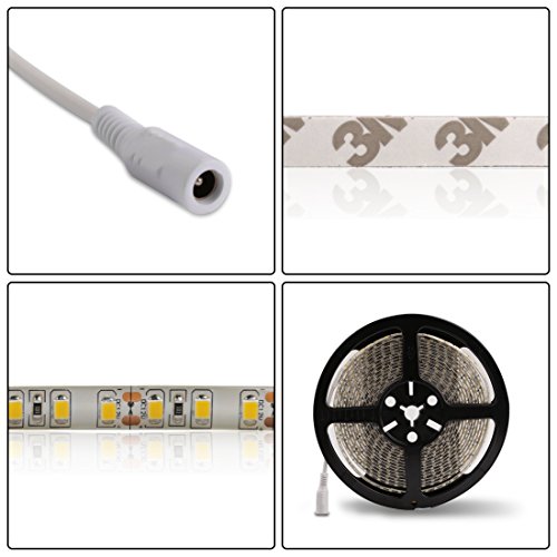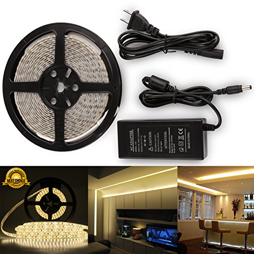 Strip Led Light Warm White Led Strip Light Kit Waterproof IP65 DC12V Led Light Strips SMD2835 600Leds Led Rope Light Led Tape Lights Flexible Led Light Strips + 12V 5A Power Supply Adapter