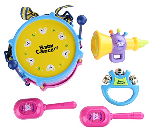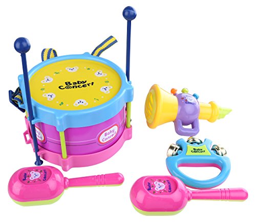 -. Title : Berry President(TM) 5 Piece Baby Rattle Roll Drum Musical Instruments Band Kit Educational Toys for Toddler Children