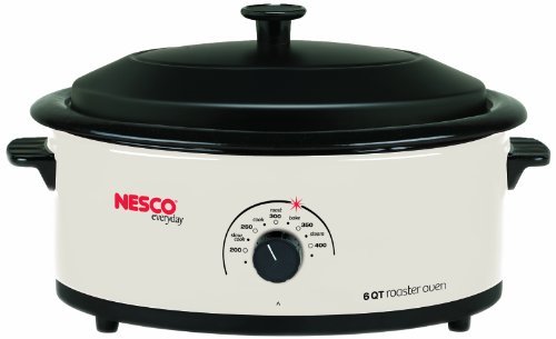 Since 1932 the Nesco brand name has been synonymous with Roaster Ovens. With a Nesco Roaster Oven you can roast, bake, cook, steam, slow cook and serve. The Roaster Oven is portable so you can make great tasting meals wherever you go. The exclusive ''Circle of Heat'' heating element wraps around for moist, even cooking. The automatic temperature control maintains even cooking temperatures from 125 degrees to 425 degrees. Removable steel rack is designed for better baking and fat-free roasting. The 6 qt size is designed for everyday use. Its versatility and size make it a perfect appliance for preparing family meals. Porcelain cook well. Recipe guide and use/care included. Porcelain is fused to the steel at a high temperature producing a non-porous, inert glass like surface that is easy to clean.