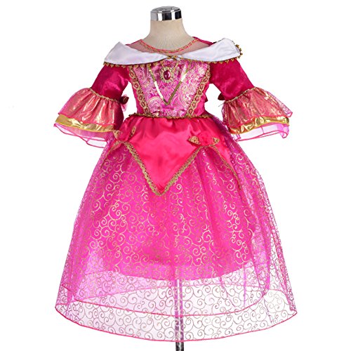 -. Brand : Dressy Daisy -. Color : Hot Pink -. Department : Girls -. Feature : Classical Stunning one-piece Sleeping Beauty style costume. Made of comfortable material. No itchy! Glitter free! And hand washable! / Long Sleeves dress with stand up white collar. Velvet bodice top carries a U shaped Lace overlay at central with elegant ornamental trims. / Elastic waistline has a short layer of gathered ruffle carrying silver swirl P.R.Int and matching golden trim. / 4 layers for added fullness to the skirt. The shell is comP.R.Ised of two layers of soft tulle and a layer of satin. / The lining is comfortable nylon satin. zip closure at side for easy dressing. -. ProductGroup : Apparel -. ProductTypeName : CHILDRENS_COSTUME -. Title : Dressy Daisy Girls' P.R.Incess Aurora Costume Fancy Birthday Party Cosplay Dress