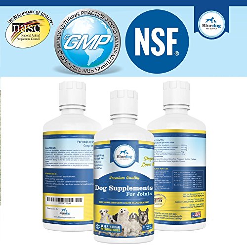 ✽ 100% SAFE AND ALL NATURAL! Medications are dangerous and only dull the pain! They provide temporary pain relief but do nothing to restore joint health. Medications can be linked to bleeding disorders, gastric ulcers, liver dysfunction and kidney damage. Why take that chance? Dog supplements for joints premium quality maximum strength liquid glucosomine is 100% Pure, Natural and SAFE! It contains no sugar, starch, salt, wheat, gluten, yeast, corn, milk, or soy derivatives. Our products are manufactured in an FDA and cGMP (Good Manufacturing Practices) certified facility in the USA! All our products are 3rd party tested and we are NSF and NASC (National Animal Supplement Council) certified to assure that our products go above and beyond what is required! We only use the very BEST ingredients. Beware of other supplements using inferior ingredients being sourced or made overseas!