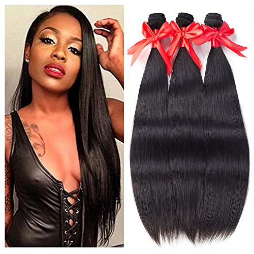 Brazilian Straight Virgin Hair 3 Bundles 8A 100% Unprocessed Human Hair Bundles Remy Hair Natural Color (14 16 18)