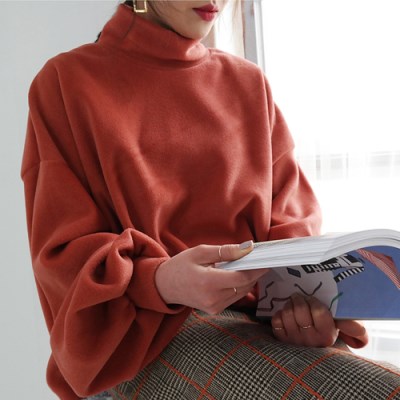 박시한 핏의 폴라 맨투맨이예요. 전체적으로 박시한핏이 돋보이는 디자인으로 트렌디하면서 센스있는 무드가 느껴졌어요.