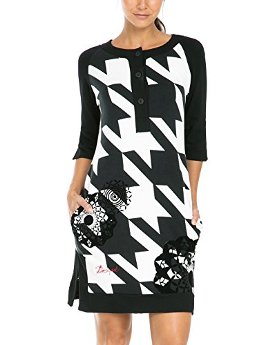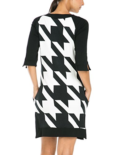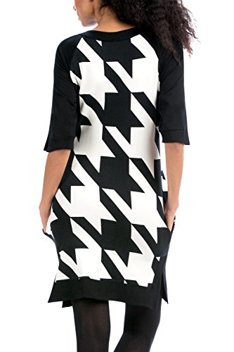 A straight cut tunic dress, perfect for a casual look, with a hounds tooth print and soft mandalas.