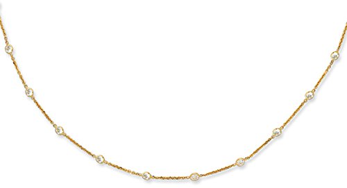 -. Title : 10" 14K Yellow Gold 1.50mm (0.06") Cable Link Chain w/ 9 Round Faceted Cubic Zirconia (CZ) Anklet w/ Lobster Clasp