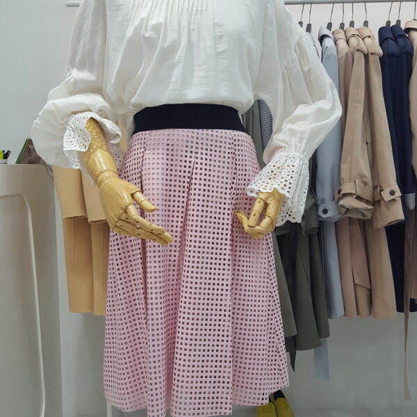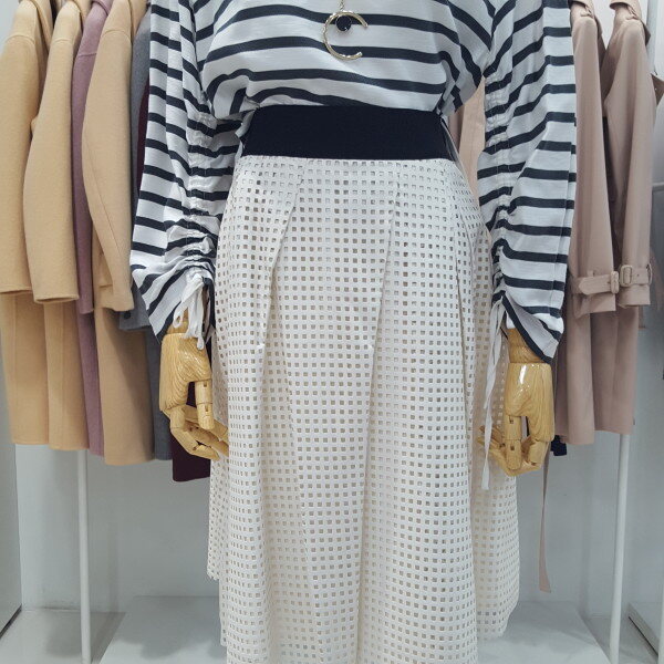 펀칭디자인의 플레어스커트예요합피느낌의 소재입니다