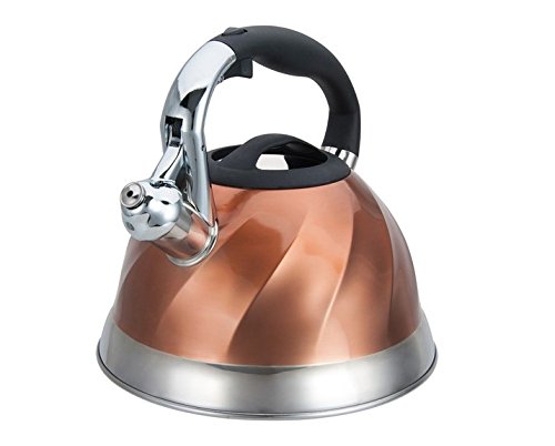 This tea kettle boils water quickly and whistles to let you know it's done. Crafted of 18/10 surgical stainless steel with a highly polished exterior. Extra-large easy-grab handle Dripless spout Capsule base ensures quick and even heating Features a large opening for easy filling and cleaning. Use on gas, ceramic and electric stove topsFeature