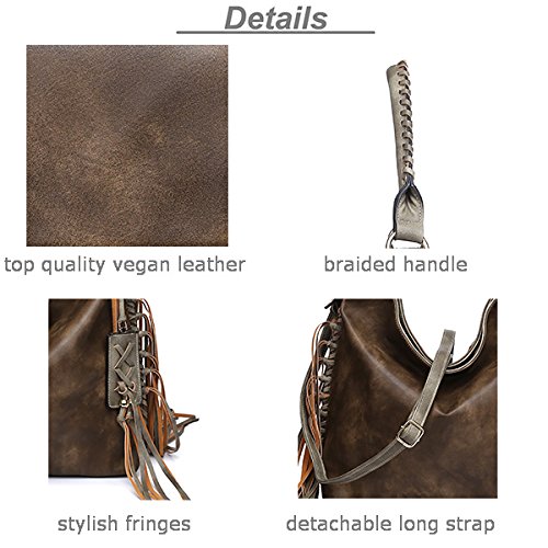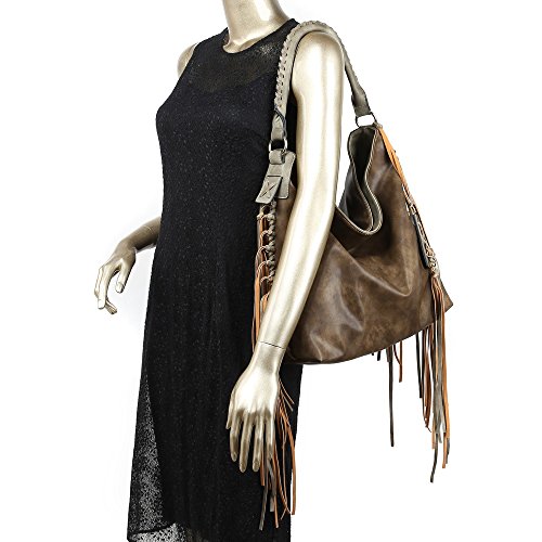 -. Title : Shomico Womens Shoulder bag Hobo Purse Crossbody Fringe Bags for Ladies Taupe Green Brown Large