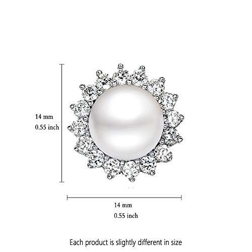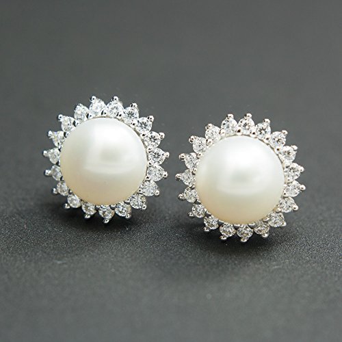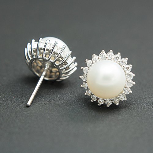 -. Title : "Sunshine" 8-9mm Freshwater Pearl with AAA Zirconia 925 Sterling Silver Stud Earrings