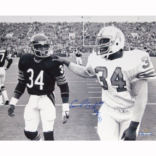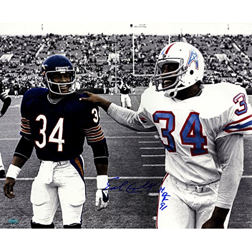 Earl Campbell (Single) Autographed Walking With Walter Payton Black and White 16 Inch X 20 Inch Photo With HOF Hall of Fame Inscribed