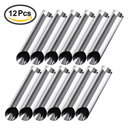 Product Description Material : Stainless steel Size: 5 x 1 inch / 12.5 x 2.5cm Package Included :12 X Diagonal Type Cannoli Molds How to use ? 1.Roll out a circular piece of dough and wrap it around the cannoli tube. 2.Deep fry until golden to achieve that perfect shape. 3.Cool it down and remove shell from the tube. 4.Fill them with the traditional ricotta cheese. 0