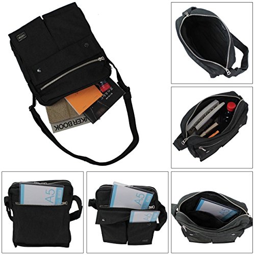 -. Feature : 【素材】コーデュラダック(縦糸:コットンムラ糸1000D、横糸:コーデュラナイロン1000D) / 【本体】W250×H280×D55(mm) [当店計測によるサイズです] 【ショルダーストラップ】長さ 約 770~1340(mm)×幅 約 38(mm) / 【重量】約 540グラム 【生産国】日本 / 【外側】スナップボタン留めポケット(M)×2、ジップポケット(L)×2 / 【内側】ベルクロ留めポケット(L)×2