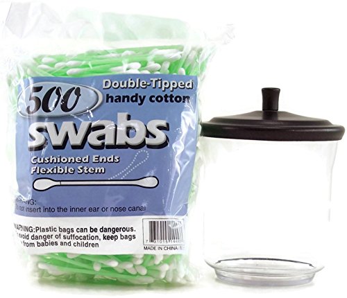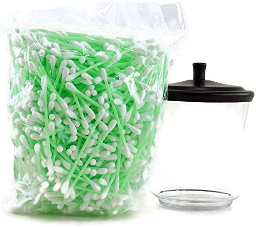 - This bundle includes 500 green cotton swabs and a container to put your cotton swabs in.