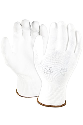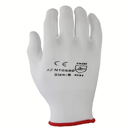 Azusa Safety N10550 13 gauge Nylon Machine Knit Safety Gloves, Polyurethane PU Coated, Large, White (Pack of 12 Pairs)