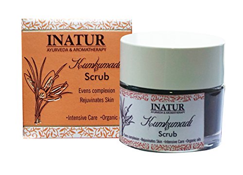 Kumkumadi scrub is an ayurvedic formulation made for intensive care with organic oils that sloughs off dead skin cells, opens up blocked pores, repairs and brightens skin by fighting ageing signs, evens complexion while nourishing the skin and brightening it like never before. It effectively tightens the skin and gives a youthful glow, clears complexion and lightens deep-rooted pigmentation, giving a rejuvenated look and an improved texture. It is enriched with the goodness of Saffron oil- that tones and gives radiance to skin, Sandal oil- that has a soothing effect and prevents marks, Almond shell powder- helps improve skin tone and speeds up cell renewal, Walnut shell powder- moisturizes and delays ageing, Rose oil- moisturizes and treats inflammation, Almond oil- reduces tan and age lines, and Rose petals-locks moisture and gives a healthy glow.