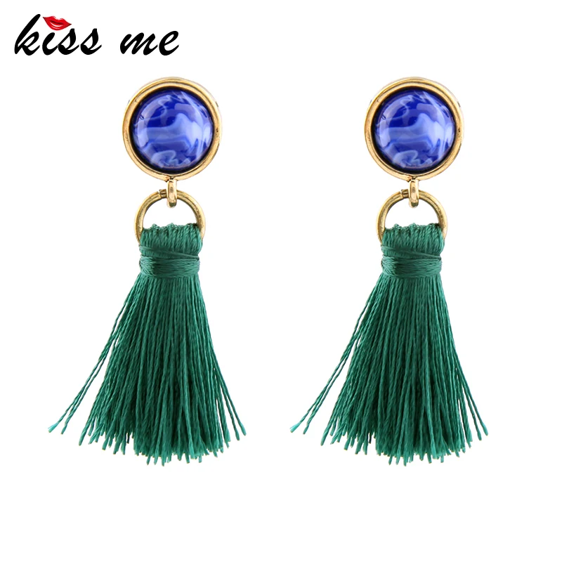 Production name ::KISS ME Brand Green Black Tassel Earrings