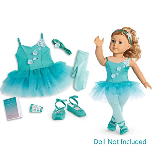 -. Feature : Her doll will bloom in the spotlight! (Doll not included) This set includes: / - An aqua leotard with a cascade of flowers and rhinestones, and an attached layered tutu that's bright and glittery on top, fading to pale blue on the bottom / - A pair of matching ballet shoes with elastic ankle straps / - Light-aqua tights, - A recital program and two pretend tickets for her friends / - A sparkly elastic headband with a flower and rhinestone accent
