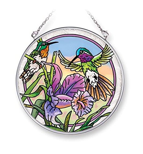 Amia 42073 4-1/2-Inch Hand Painted Glass Circle Suncatcher, Medium, Iris and Hummingbird Design
