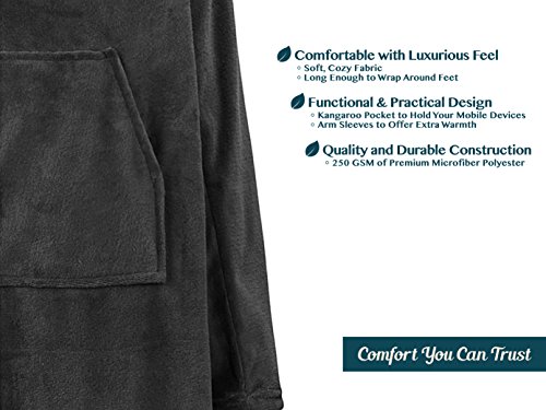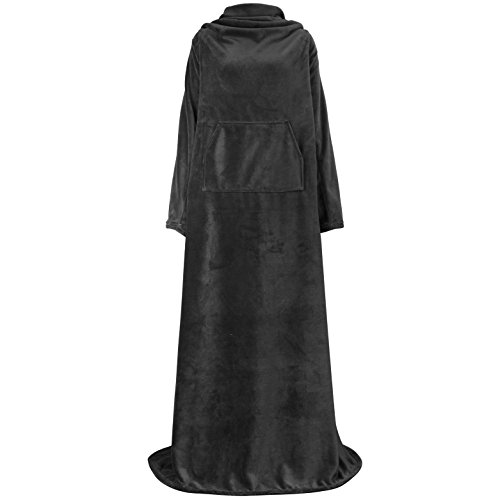 Studio : Pavilia Publisher : Pavilia Product Description Premium Fleece Blanket with Sleeves by Pavilia ? This Premium Fleece Blanket with Sleeves by Pavilia is constructed with 260 GSM of microfiber polyester that is extremely comfortable with a luxurious feel at the same time. ? Ideal for keep you cozy while lounging and watching tv, the blanket also comes with sleeves and a functional pocket so you have full arm mobility while relaxing on your sofa/bed! ? Measures 70' x 50' and available in 9 Colors - Black, Charcoal, Brown, Latte, Navy, Light Gray, Wine, Sea Blue, Cheetah - so you can mix and match! Pavilia is the Comfort You Can Trust. Our Vision To provide premium home goods that improves and enriches the life of everyone. We will continue to innovate and bring exciting products to market so you can enjoy life more! Our Products At Pavilia, we offer an extensive line of throws and blankets that are made of premium fabrics for different use cases. Our blankets comes in different patterns, trims, and colors, making them the perfect choices for mixing and matching, and complementing your home. Furthermore, we incorporated practical designs into our blankets such as arm sleeves so you can take the joy of lying around your couch to the next level! 0