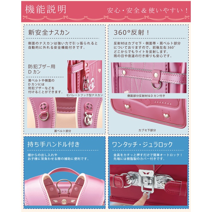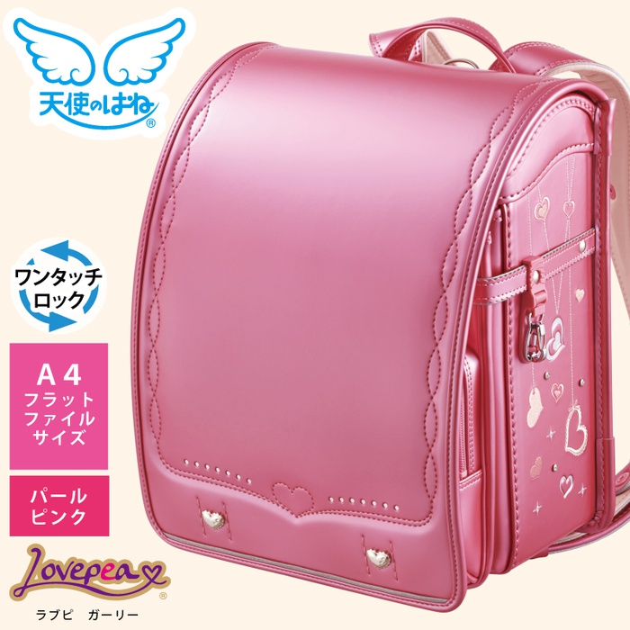 원본상품명: 送料無料 ランドセル 女の子 天使のはね(R) ラブピ ガ?リ? 2018年度A4フラットファイル?? セイバン ?産 クラリ?ノランドセル せみね 360°反射材 ワンタッチロック ハ?ト Lovepe(R) パ?ルピンク