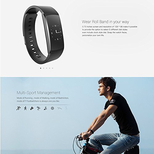 -. Feature : 【Heart Rate Monitor】With advanced heart rate monitoring technology, I6 Pro band fitness tracker keeps your knowing your heart-all day and during workouts. It also will automatically entered into Heart rate monitoring model when you master your sport rhythm, makes exercise more scientific and effective. / 【Exercises Types】 Smart Band can automatically identify four types if exercises: basketball, cycling, walking and running. All you have to do is go forward, no additonal manual operations. Waterproofing stander of the Band was designed as grade IP67, on land or in the water, support wear it go swimming or surfing. / 【Read On Screen】I6 Pro band shows your incoming calls and vibrates your wrist, even in a noisy environment, you never miss important calls, to help you take control of your day and your schedule. You can also slide the screen of I6 Pro to reject a call convenient and efficient. 8 messages can be stored at a time on it. Message on the phone can be pushed to the Roll Band timely and the band will remind you by vibrating your wrist and display the content on the screen. / 【Comfortable Curved Frame】 The curved bottom of I6 Pro band fitness tracker can be snug against your skin, quite match ergonomics and offer comfortable training. Curved frame design, makes the visual thickness of I6 Pro band is breathtaking 5.6mm. / 【Highlight PMOLED】0.73" HD and I6 Pro band fitness tracker supports lifting the wrist to light up screen, Full-screen touch, clickable, long press and slide. Time, Date, Weather, Temperature, steps, distance, calories, heart rate in real time, messages, call ID, to-do, movement model..can be display on the screen at any time, makes it readily available for check and keeps track of your exercise progress and effect.
