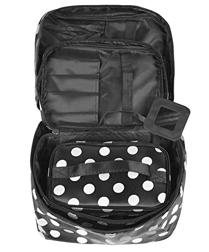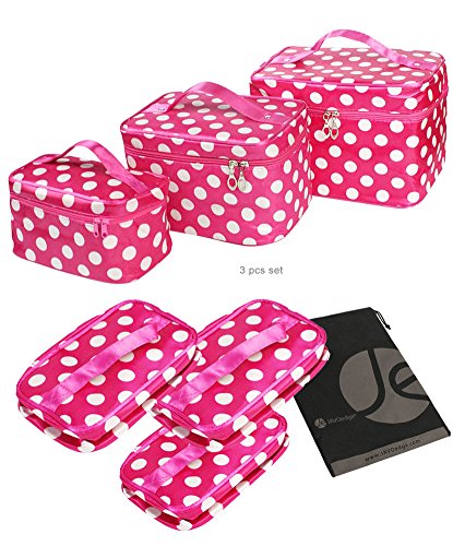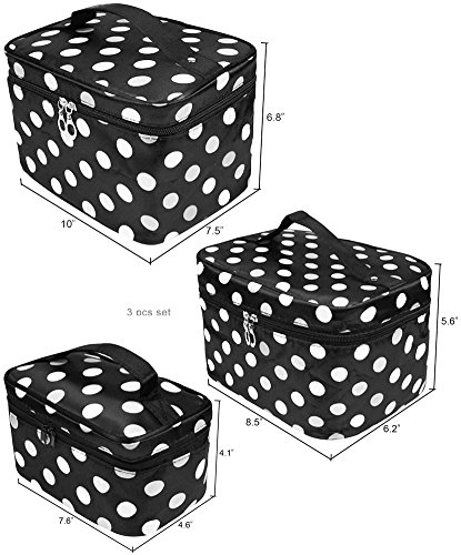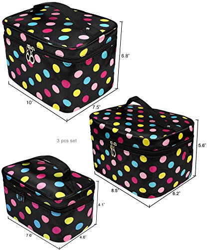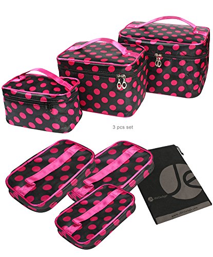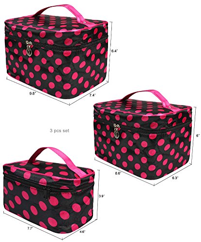-. Brand : JAVOedge -. Color : Various -. Department : womens -. Feature : 3 piece set, polka dot patterned cosmetic and toiletry bags / Sizes: Small: 11 by 19.5 by 11 inches, Medium: 15.5 by 21.5 by 15 inches, 17.5 by 25.5 by 19 inches, Closure: Double zipper, Handle: Top handle / Roomy interior is perfect to store cosmetic and toiletry essentials, Travel with bags or use at home / Different sized bags to suit your travel, storage, organization needs / JAVOedge is a registered trademark and is exclusively distributed by JAVOedge. Other seller offerings are counterfeits, they will not be identical to what is advertised here. -. Label : JAVOedge -. Manufacturer : JAVOedge -. MPN : SIZECLR-00722 -. PackageQuantity : 1 -. PartNumber : SIZECLR-00722 -. ProductGroup : Apparel -. ProductTypeName : APPAREL -. Publisher : JAVOedge -. Studio : JAVOedge -. Title : JAVOedge 3 Piece Polka Dot Travel Storage Cosmetic, Makeup Organizer Bag (3 Sizes Set: Small, Medium, Large Sizes)