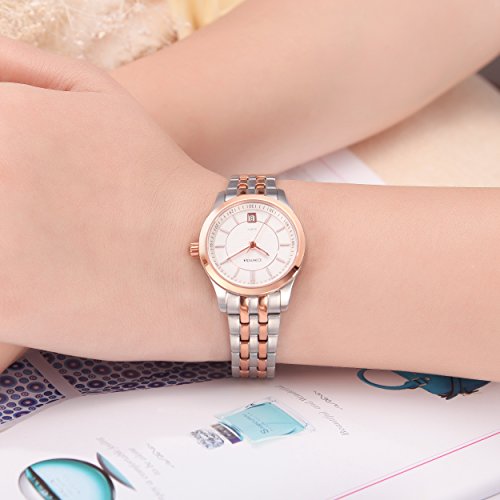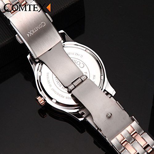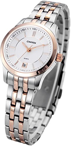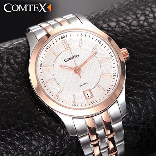 Comtex 레이디스 손목시계 맨즈 핑크 골드 스테인레스 밴드 캘린더 아날로그 일본제 쿼츠 워치 시계