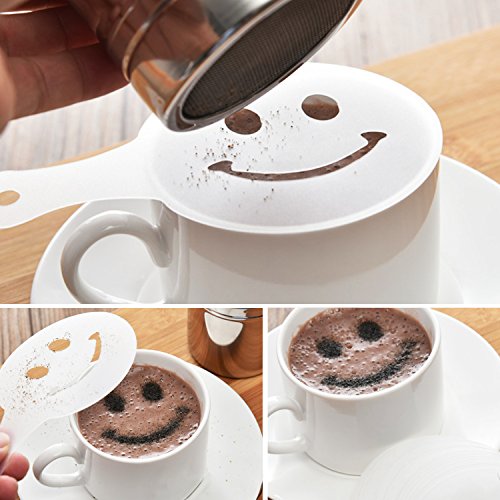 TRIXES Pack of 16 Various Design Barista Coffee Stencils and Cake Decoration Tools Made of high quality plastic these stencils can be used over and over again to create attractive coffee's lattes and hot chocolate. Features Pack of 16 each with its own unique design Easy to clean and completely reusable Get professional looking hot drinks with chocolate and cinnamon Also great for cake decoration especially cupcakes Dimensions: 0.030kg 0.8cm x 9.0cm x 13.5cm (height x width x length) Contains 16 x Coffee Stencils 0 |