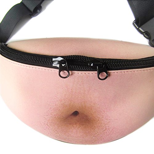 Studio : MILOOD Publisher : MILOOD Binding : Misc. Product Description -Product Description: -1. Dimensions:?approx. 12.6"×5.1"×3.2"(L×H×W) -2. Weight:?0.29lb -3. Outer Material:?PU -4. Inner Material:?Nylon -5. Style: Funny -FEATURES: 1. Best choice for beach, party, concerts, raves, barbecues, festivals, traveling, hiking, running, bicycling and other outdoor activities. 2. Adjustable waist belt, easy to adjust to your ideal waist. 3. Sturdy and Lightweight, useful when you don't want bulky things in your pocket. 4. Fake Belly fanny bag is attractive in the crowd, bring more funny to life, and it's also very fashion and unique. 5. Water resistant: Keeps your belongings dry in the rain. Note: It is "splash proof". It will keep your things dry if it's just rainy or if it gets splashed. But if it's submerged in water the water will get in through the zippers.