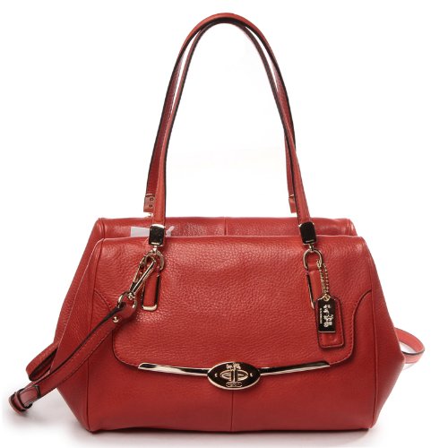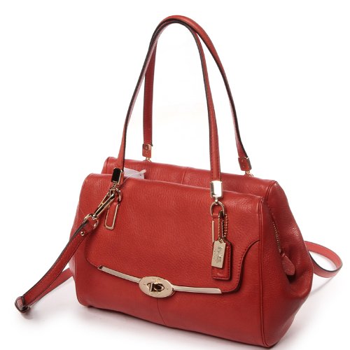 -. Title : Coach Madison Small Leather Madeline East/West Satchel Vermillion