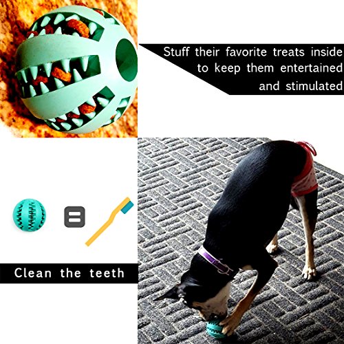 Benefit of Rubber Treat Ball The ball's designed with special rubber nubs which can help scrub your dog's teeth as they chew on it. The nubs massage their gums and can contribute to gently removing plaque or dirt. It also has a pleasant mint flavour to keep your four-legged friend's mouth smelling fresh.