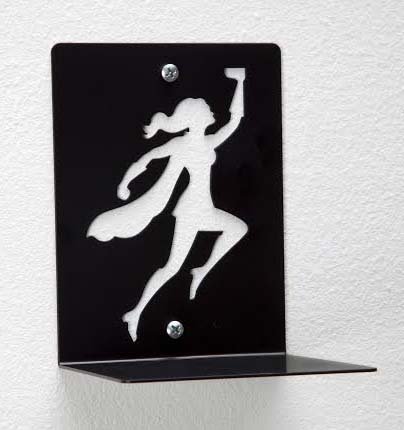 Artori Design "Wondershelf" Black Metal Female Superwoman Floating Bookshelf, Unique Book shelf, Gifts for Geeks, Gifts for Book Lovers, Cool Book Stacker, feminist present, Gift For Mom, Mothers Day