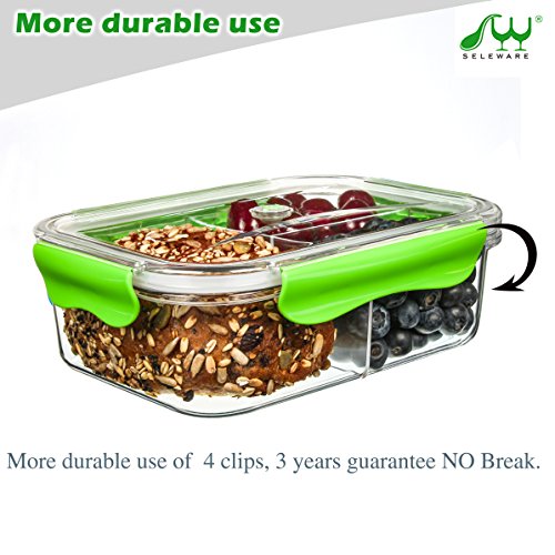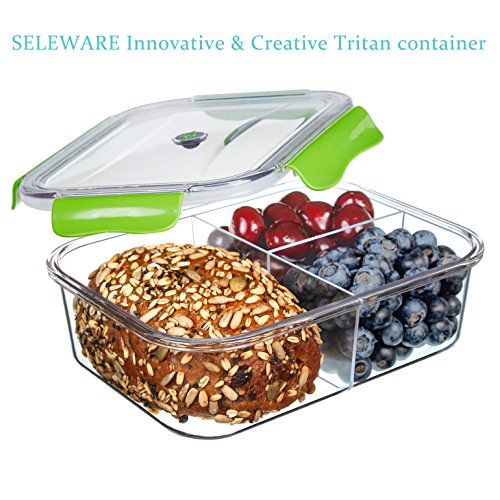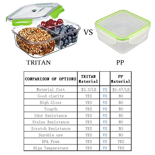 - DIVIDED 3 COMPARTMENT TRITAN PLASTIC DESIGN: The storage Containers offer a unique rectangle Tritan plastic divider with standard height divider, preventing food from mixing during travel or changing taste when heating. The snap locking BPA-free lids with built in silicone gasket to keep food fresh,100% leak proof and air tight.