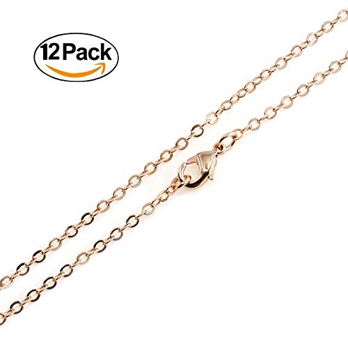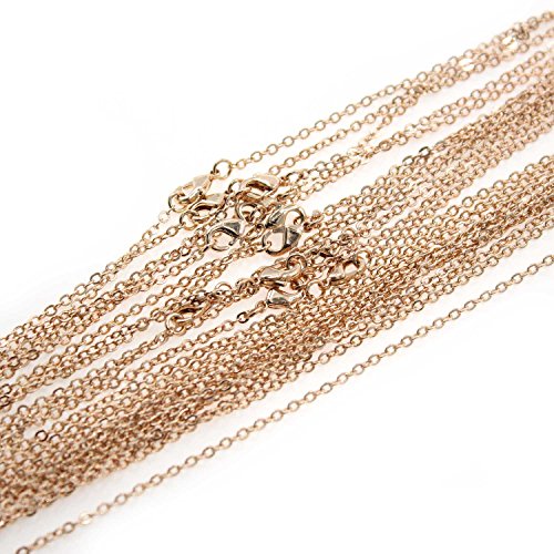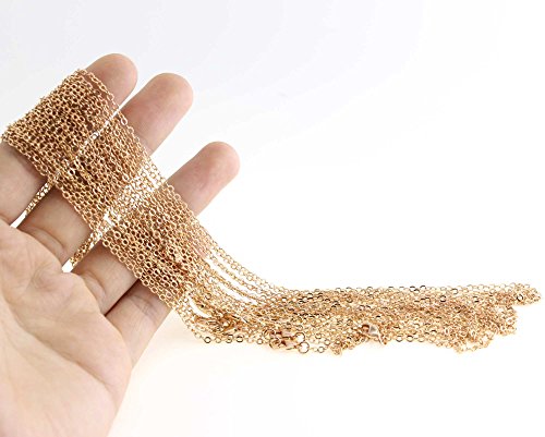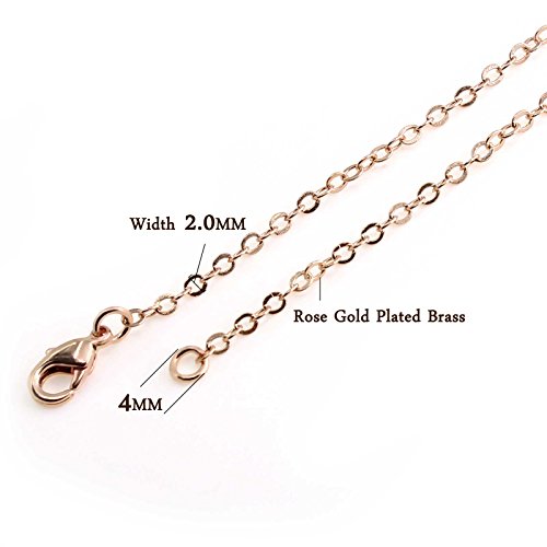 Wholesale 12PCS Rose Gold Plated Solid Brass Flat Cable Chains Bulk Finish Chain for Jewelry Making 18-30 Inches (20"(2.0MM))