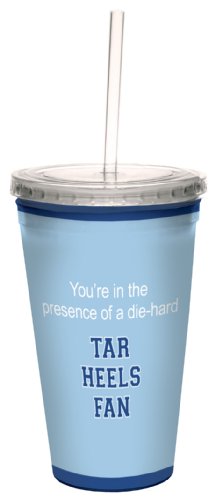 TREE-FREE GREETINGS CC34514 TAR HEELS COLLEGE FOOTBALL FAN ARTFUL TRAVELER DOUBLE-WALLED COOL CUP WITH REUSABLE STRAW, 16-OUNCE