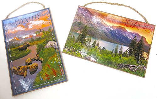 Idaho, Souvenir, Lake and Peaks At Sunset, and Horses & Bam, Wall Decor, 10'x7' Wood Wall Plaque, Set of Two