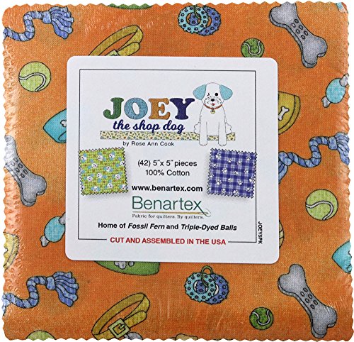 Benartex Joey the Shop Dog Precut 5-inch Charm Pack Cotton Fabric Quilting Squares Assortment