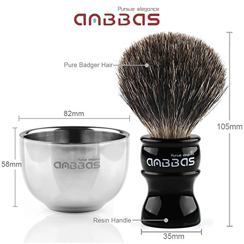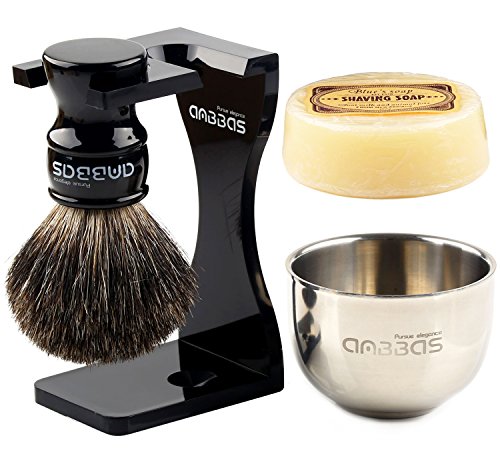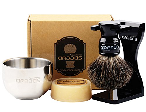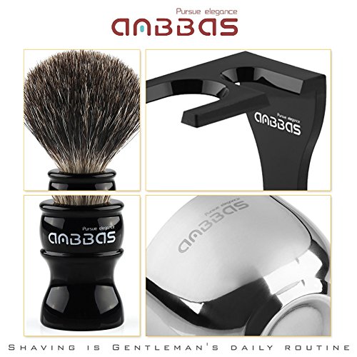 Shaving Set, 4in1 Anbbas Pure Black Badger Shaving Brush with Long Resin Handle and Acrylic Anti-impact Shaving Stand,Soap Bowl Stainless Steel Dia3.2"...