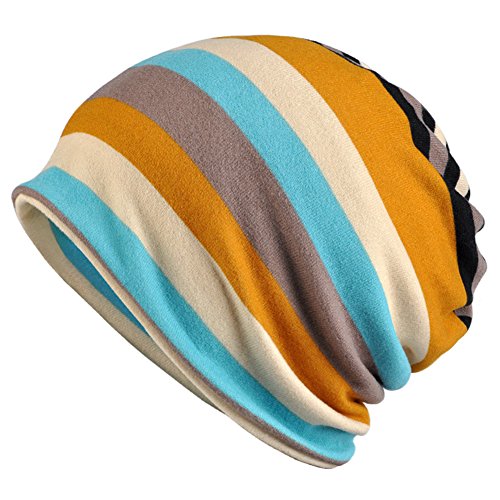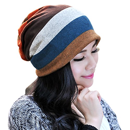 Binding : Apparel Product Description Reasons To Purchase From Us 1. Design - Claasics will never die! Striped Design makes you in a classic look,can matach with any clothes as sweater,pullover,shirts;Top is available for ponytail due to the elastic beabietail 2. Multi Wear - You can wear it as normal beanie hat,also can wear with your ponytail outside;Can be worn as scarf and Mask Wrap;Nice to wear as sports band or headband.You can totally wear it in 4 different styles 3. High Quality Material - Double layered knitting makes it super soft and comfortable to wear;Keep you warm and breathable in Spring,Autumn and Winter 4. High Elastic - This is one size beanie hat 29*29cm(Tile Size),free size fits most head due to high elastic